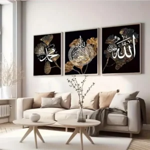 • Set of 3 Black 3D Islamic Calligraphy Wall Frames – Stylish MDF Décor for Home & Office Set of 3 Black 3D Islamic Calligraphy Wall Frames – Stylish MDF Décor for Home & Office ₨ 1,099 Original price was: ₨ 1,099.₨ 899Current price is: ₨ 899.